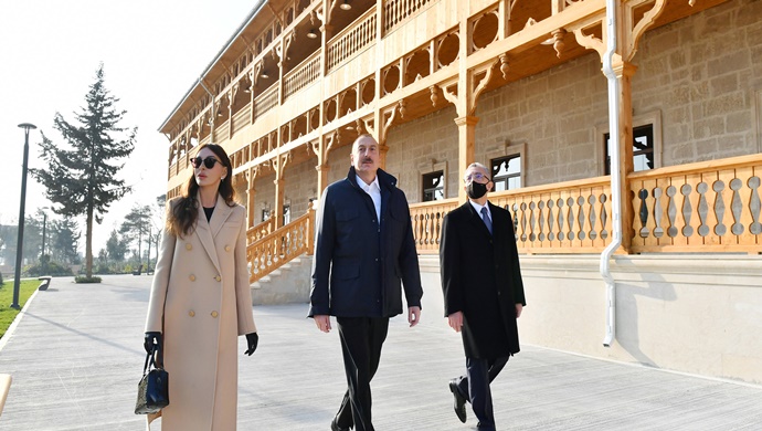 İlham Aliyev ve First Lady Mehriban Aliyeva, Şuşa’daki 23 binadan oluşan konut kompleksinin inşaat çalışmaları ile tanıştı